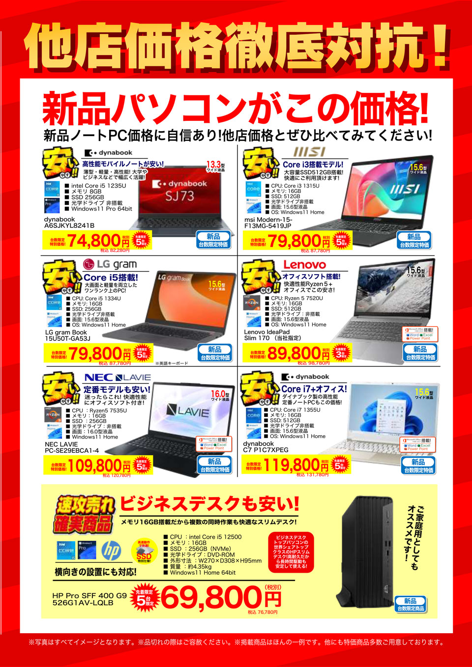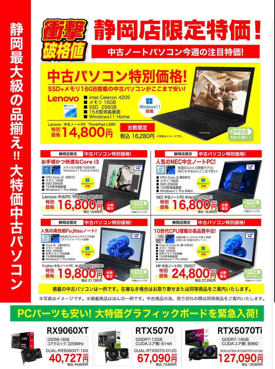 中古パソコンも、もちろん大特価!!
