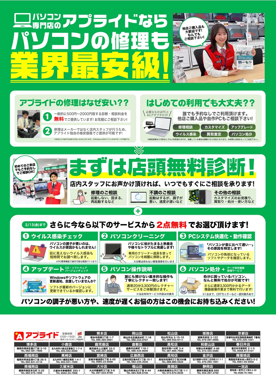 万が一他店で当店よりもお得なパソコンを見つけたら、アプライドにご相談下さい!