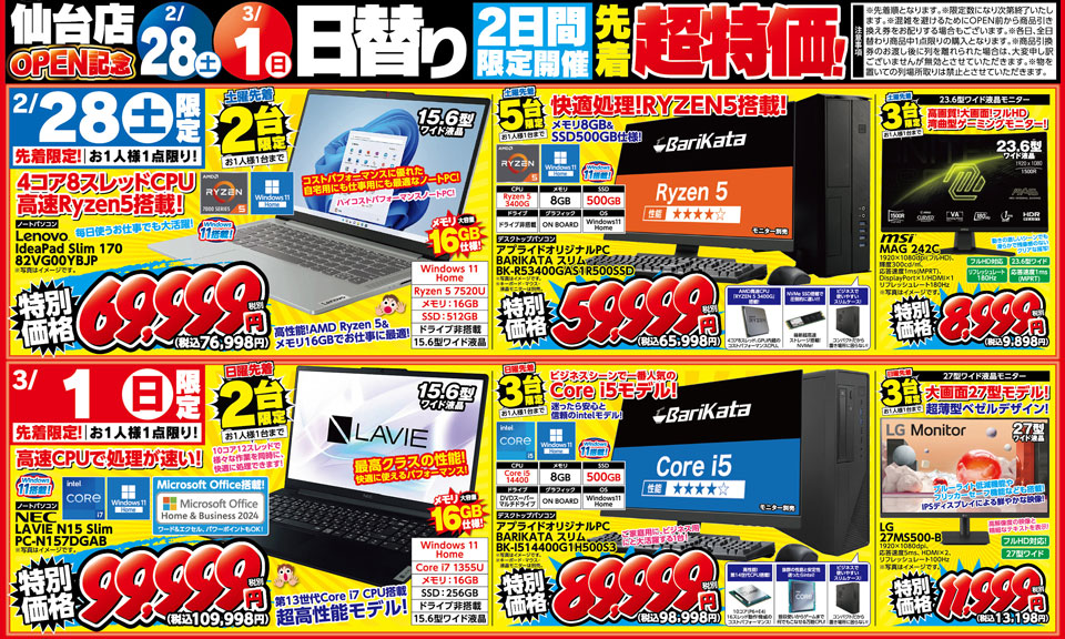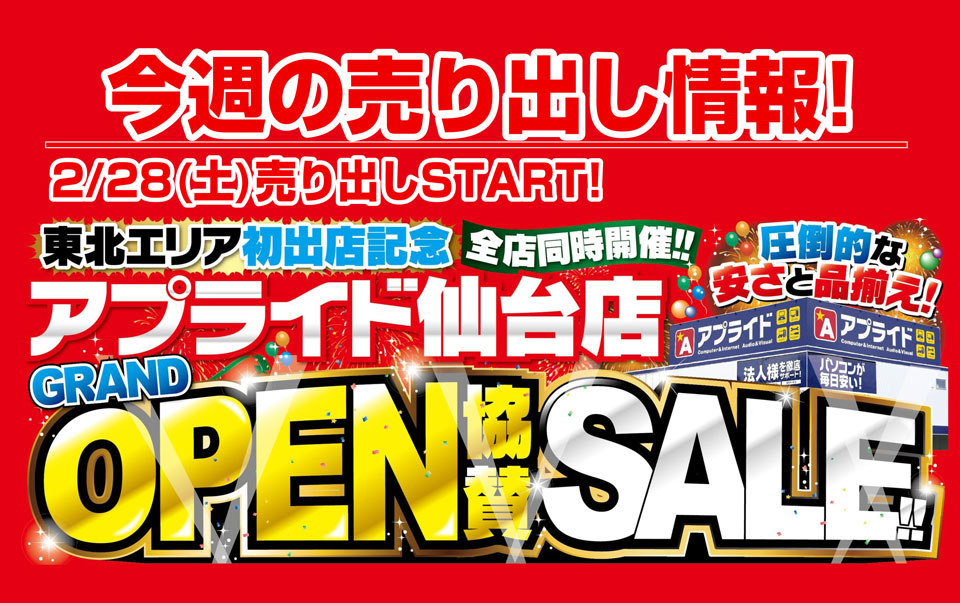 【今週末のイベント情報】 『仙台店グランドオープン協賛セール!』2/28(土)全店一斉スタート!