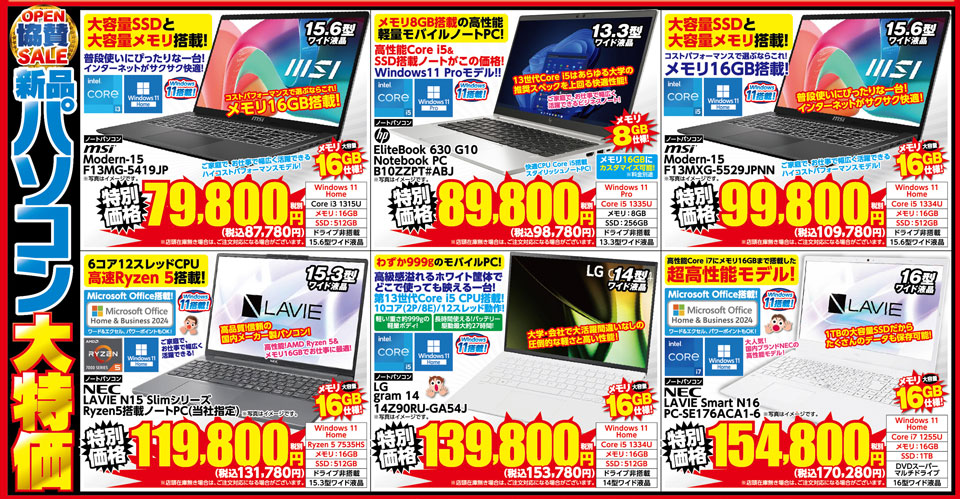 新品パソコンも超お得にお買い求めいただけます!