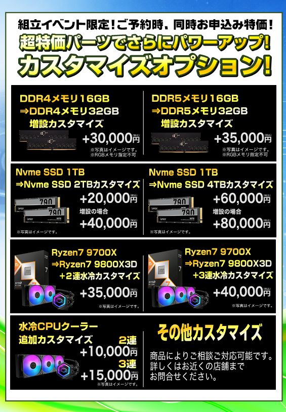 カスタマイズやオプションメニューも豊富にご用意しております!
