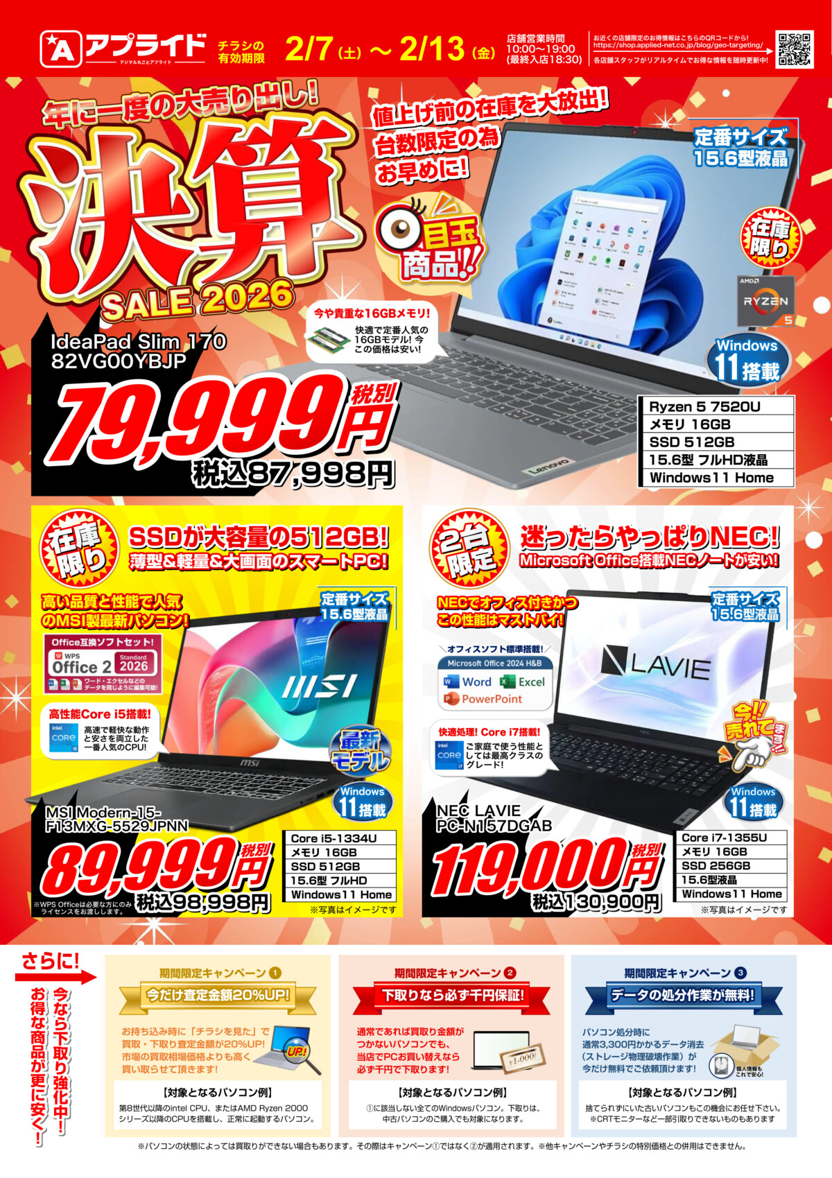 【 店舗直送お得情報! 】アプライド倉敷店 WEB限定情報!!
