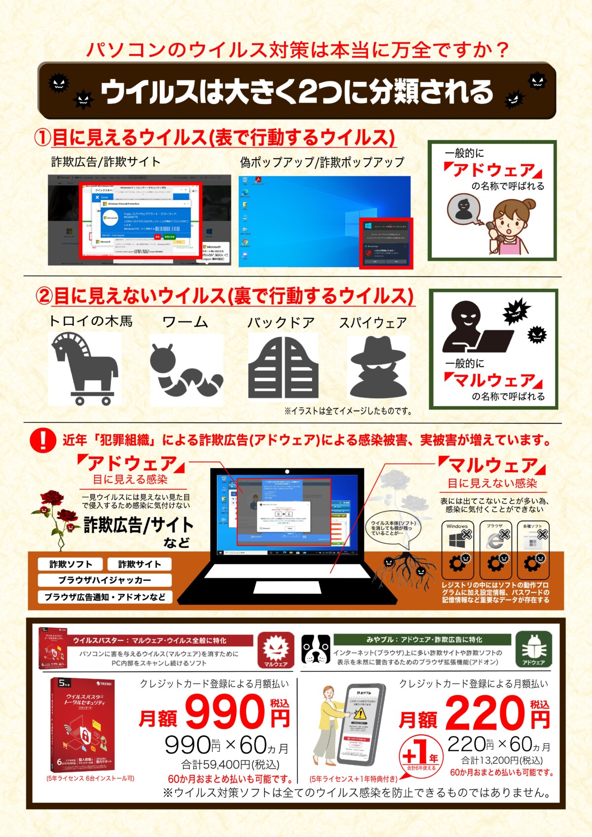 マイクロソフトからの警告表示詐欺のお問い合わせが急増しております!