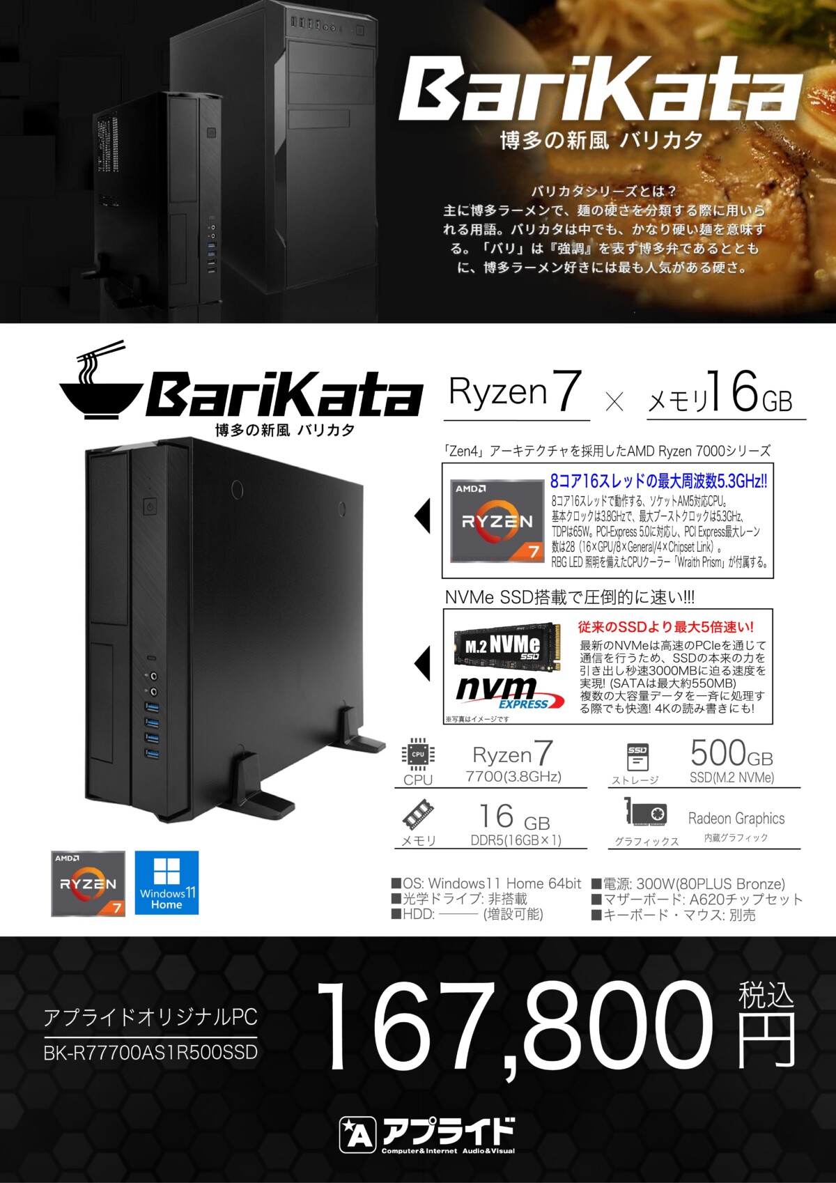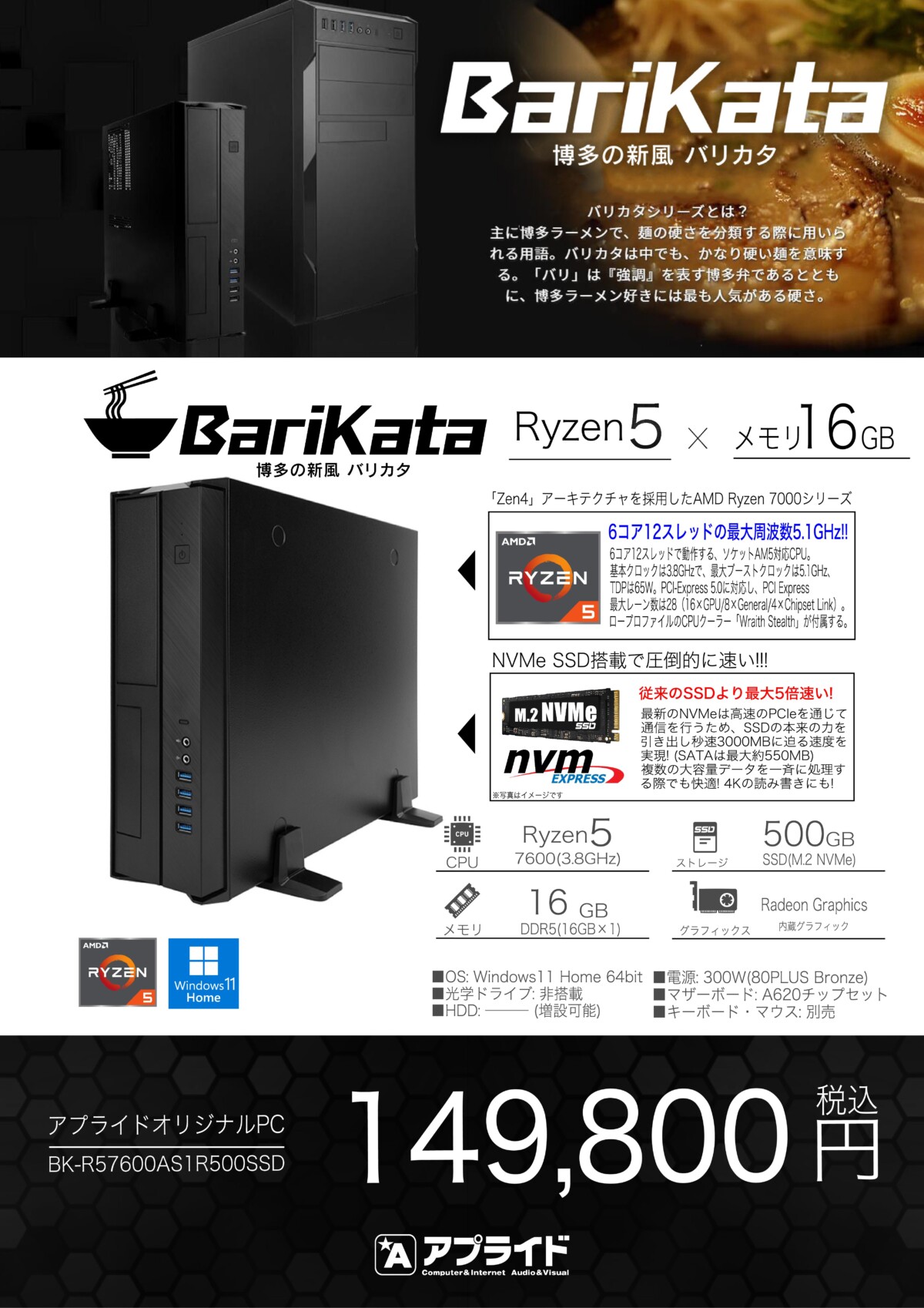 Ryzen7、メモリ16GBでスリム型。