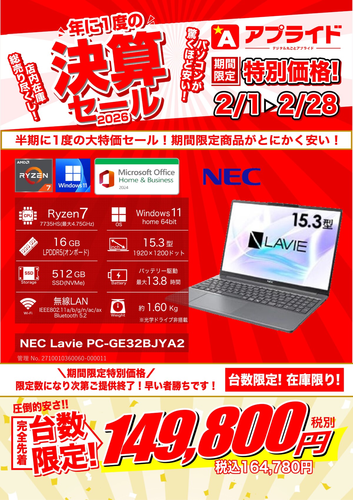 【 店舗直送お得情報! 】 アプライド博多店限定 WEB限定パソコン特価情報!