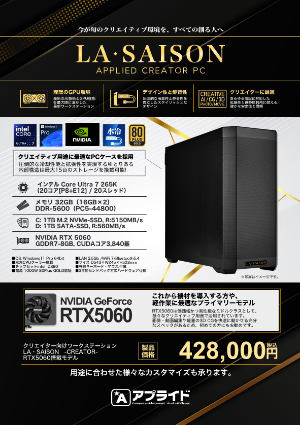 クリエイティブな作業におすすめな構成となっております。