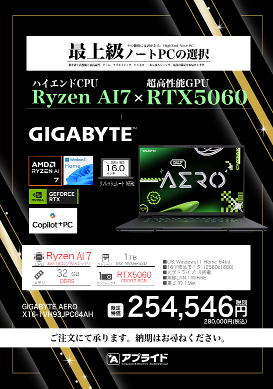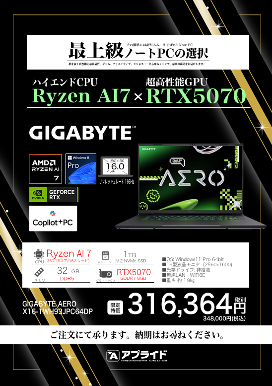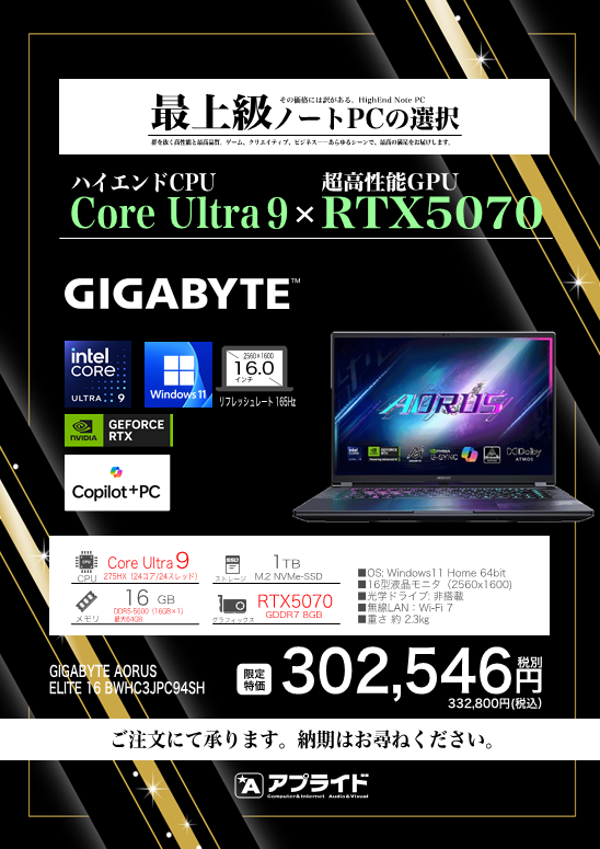 GIGABYTE AORUS ELITE 16 BWHC3JPC64SH