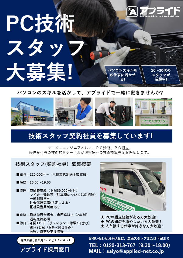 <PCテクニカルスタッフ募集|アルバイト・契約社員募集>
