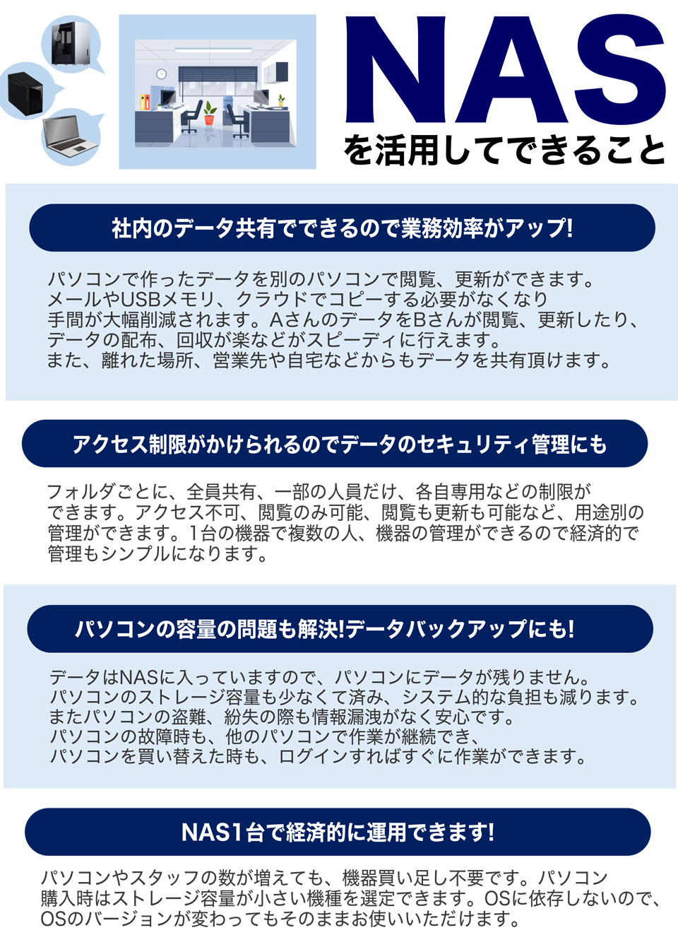 NASの導入でデータ環境を守り、快適に活用されてる企業様が増えています!