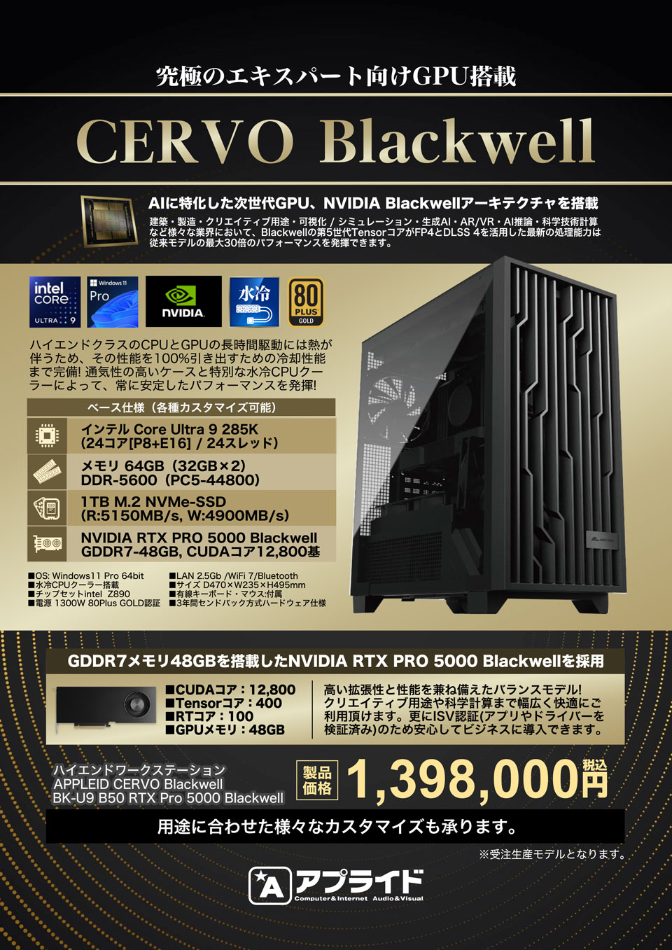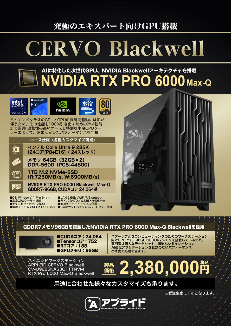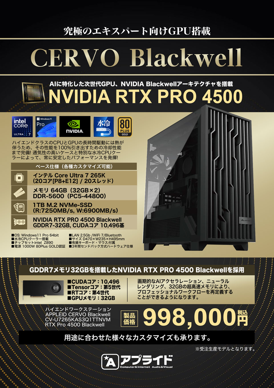 アプライドのCERVOシリーズに最新モデル登場!店頭にて予約販売受付中!