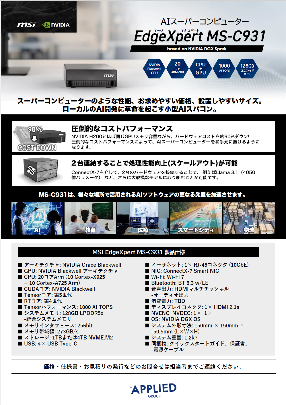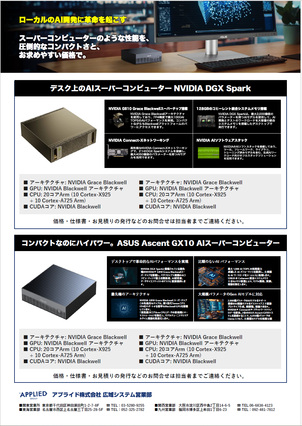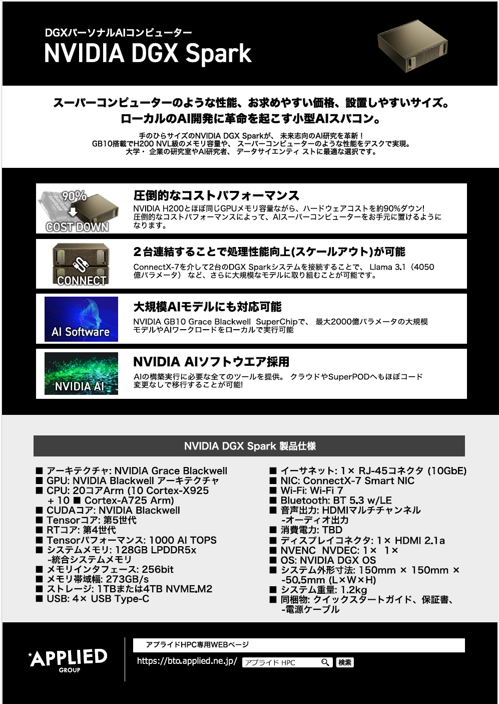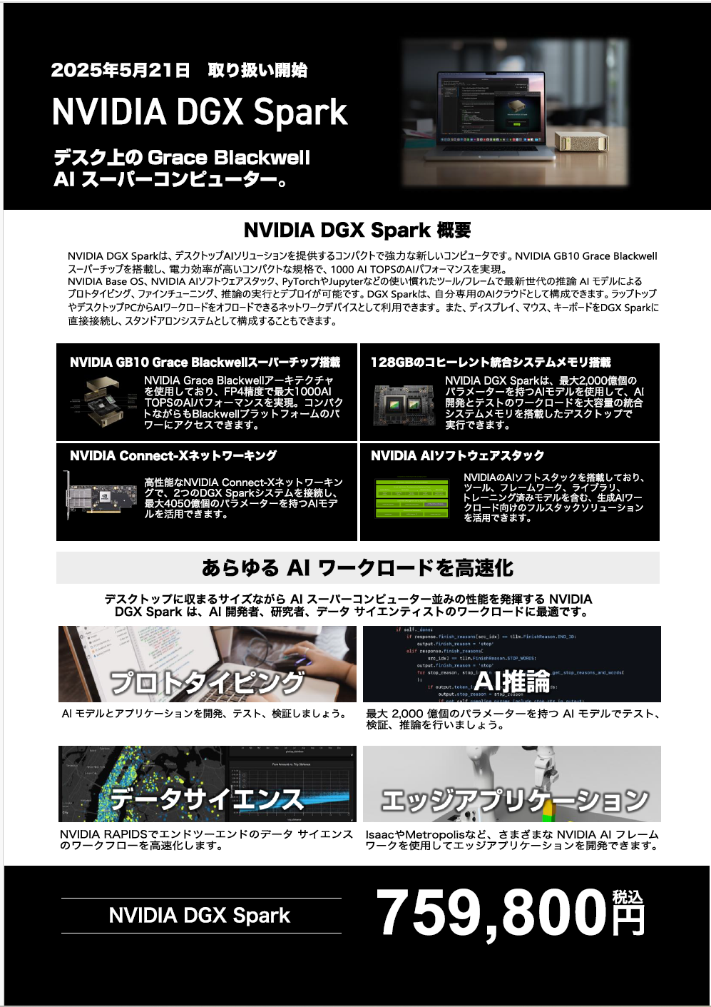 話題のNVIDIA DGX Spark 取り扱い開始しております!