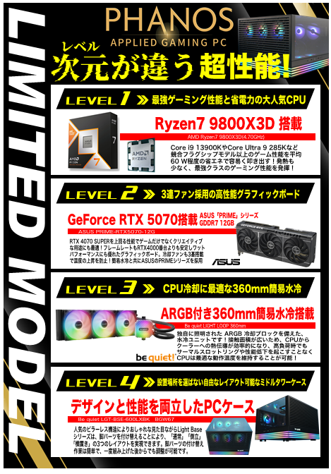 圧倒的冷却性能で安心の高品質、高耐久モデル!今なら水冷クーラー無料カスタマイズ実施中!!