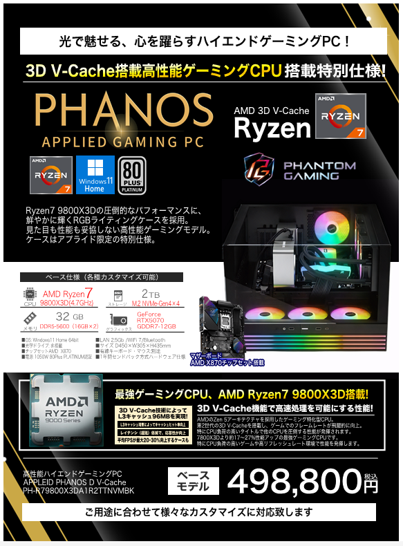 最強ゲーミングCPU,AMD Ryzen79800X3D搭載ハイエンドゲーミングPC登場!