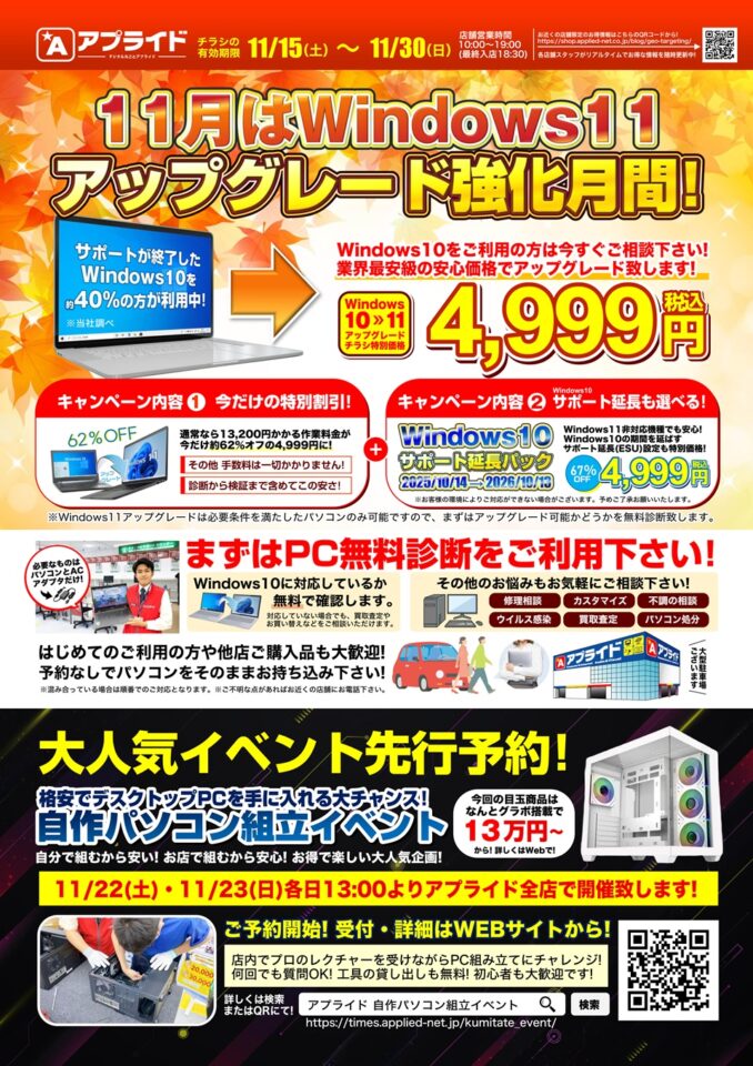 長く快適に使うためのパソコン選びは、アプライドにお任せください!