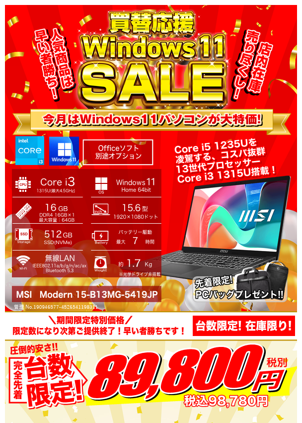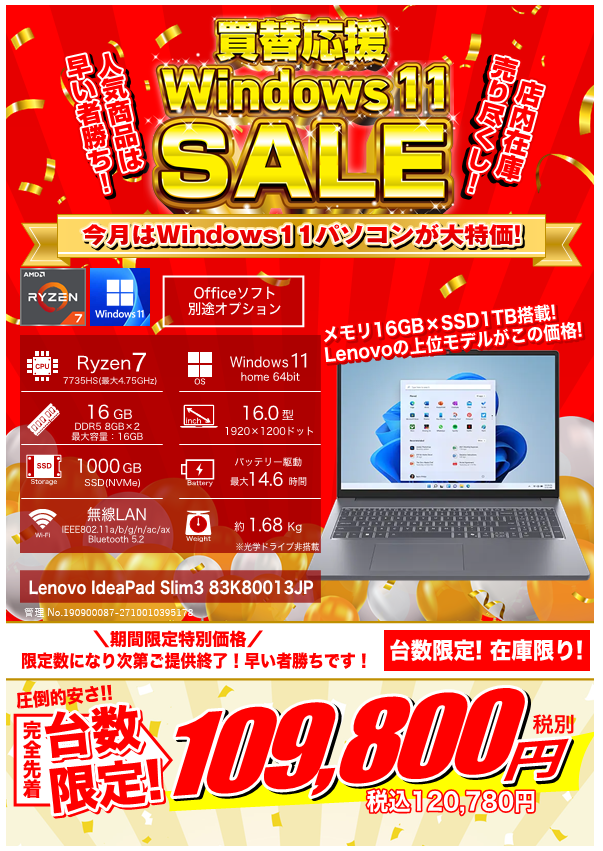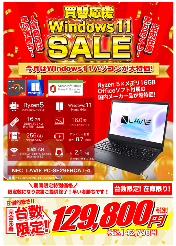 セール期間中の特別価格、特別仕様のパソコンも準備中!