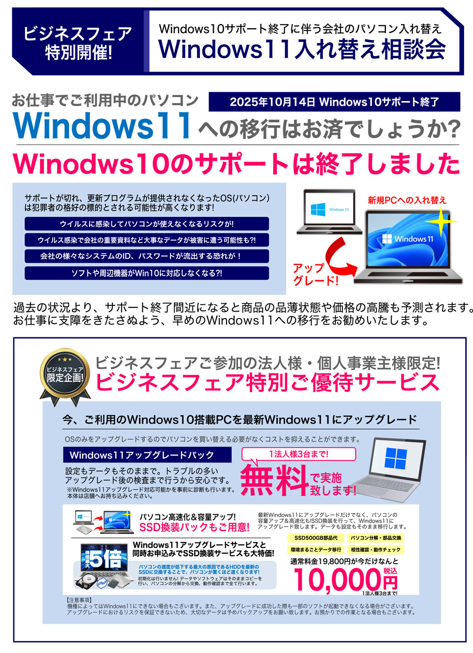 ビジネスフェアにて詳しくご案内致します!Windows11の入れ替え等をご検討の法人様にぜひ!
