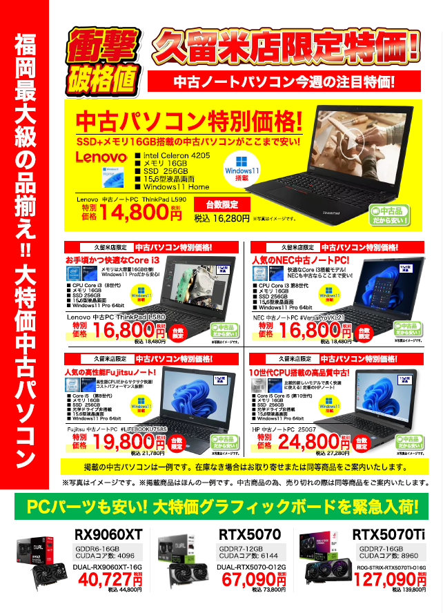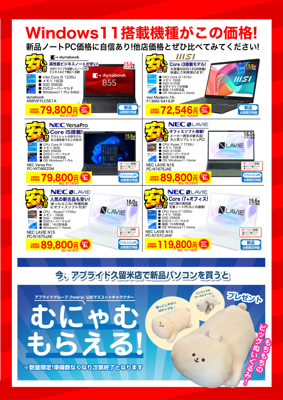 セール期間中に久留米店で新品パソコンをご購入いただくと、、、、、、、