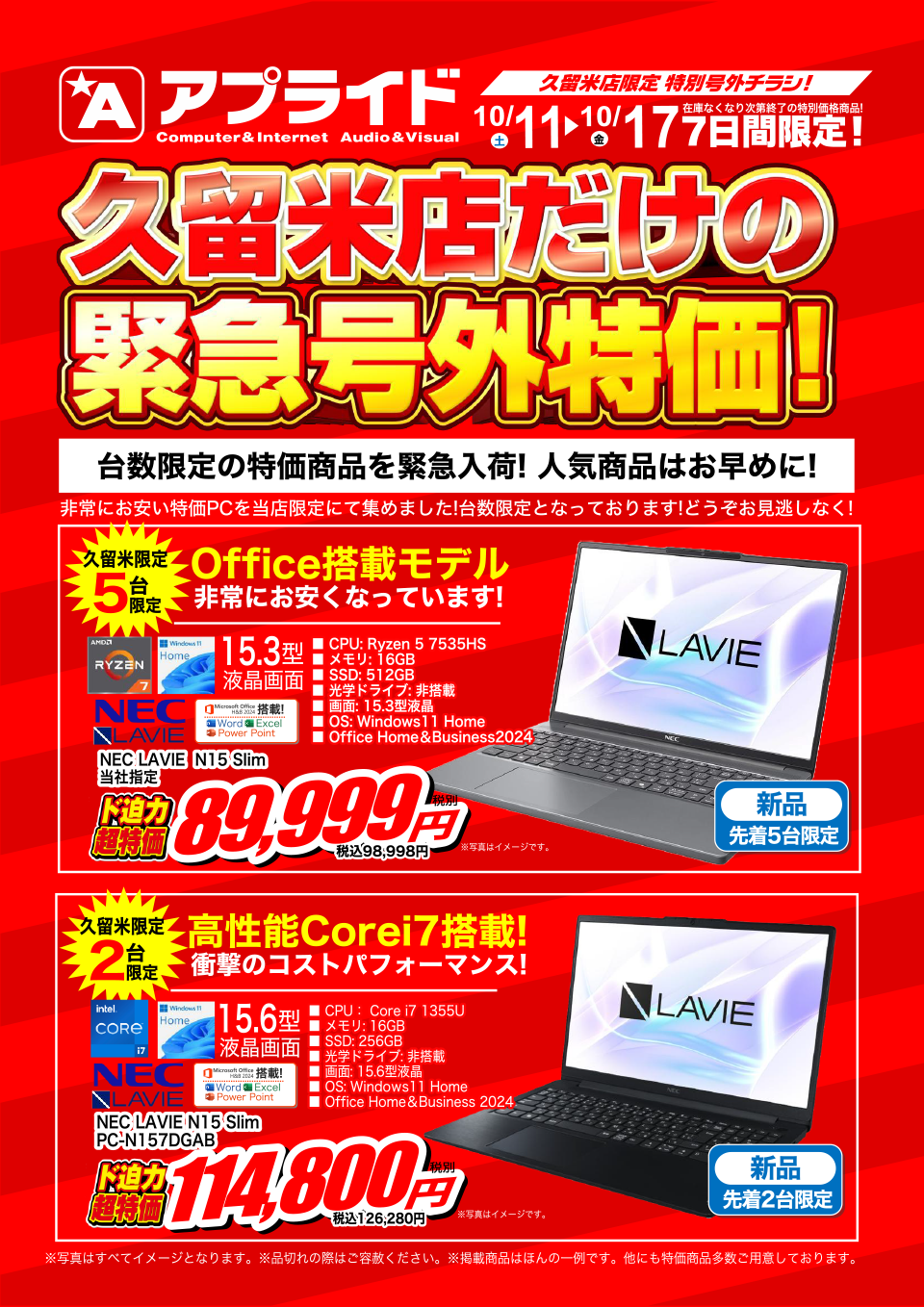 【久留米店限定】他店価格徹底対抗SALE!10/11(土)よりSTART!