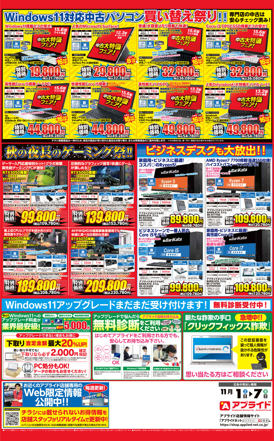 万が一他店で当店よりもお得なパソコンを見つけたら、アプライドにご相談下さい!