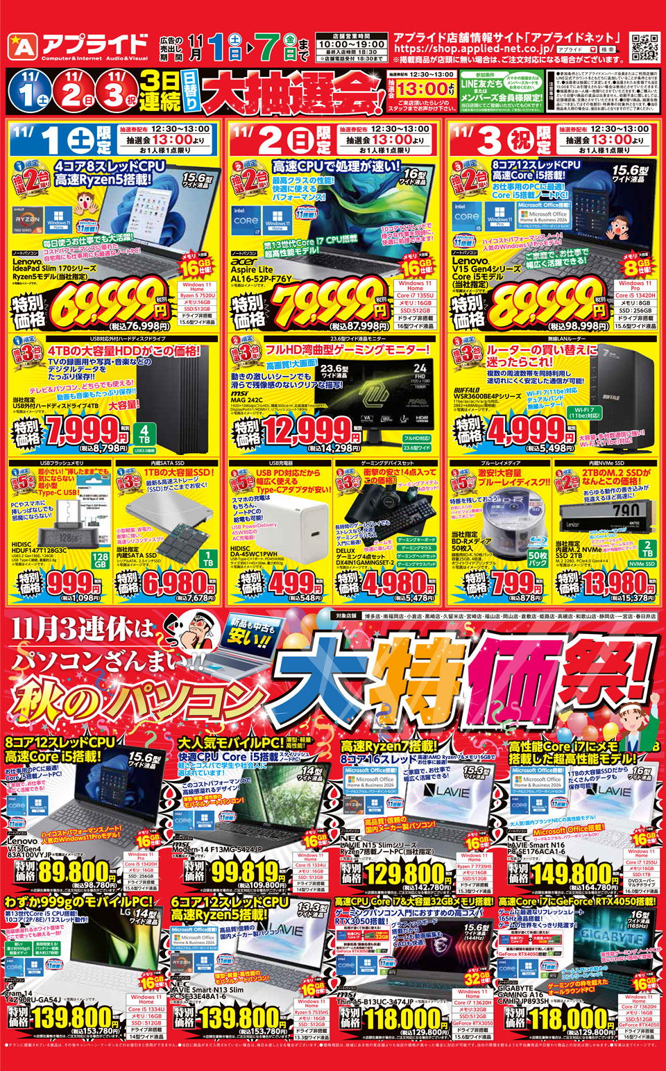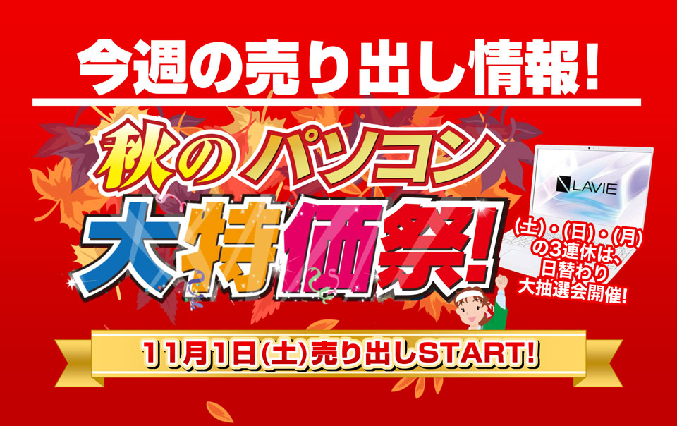 【今週末のイベント情報】秋のパソコン大特価祭! 11/1(土)スタート!