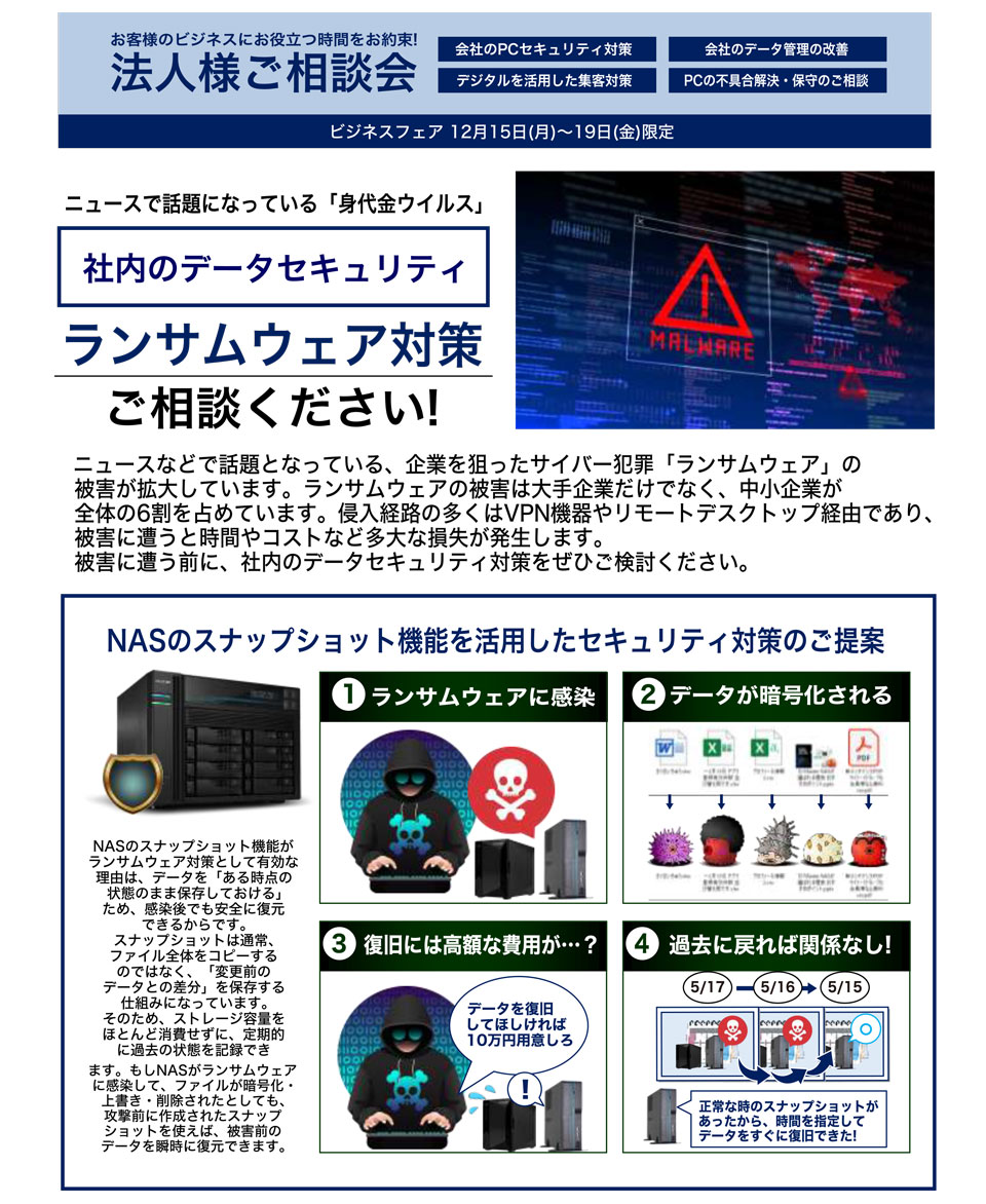 社内のデータセキュリティ、ランサムウェア対策ご相談会