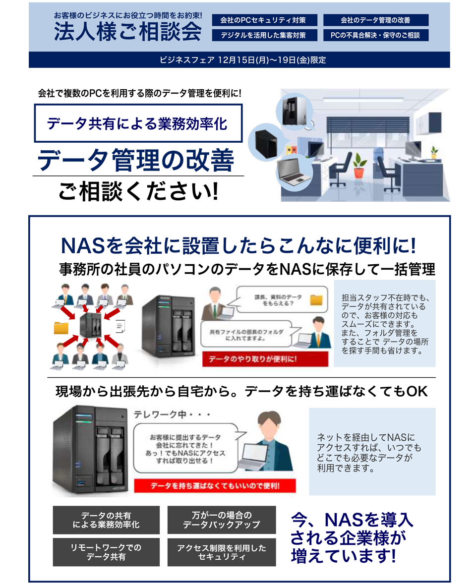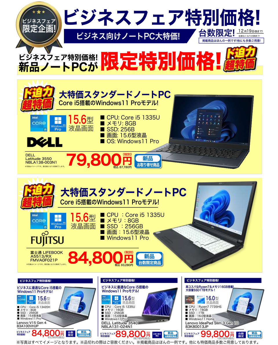 ビジネスフェア期間中は、ビジネス向けPC、中古PC等、様々な特価PCをご用意いたします!