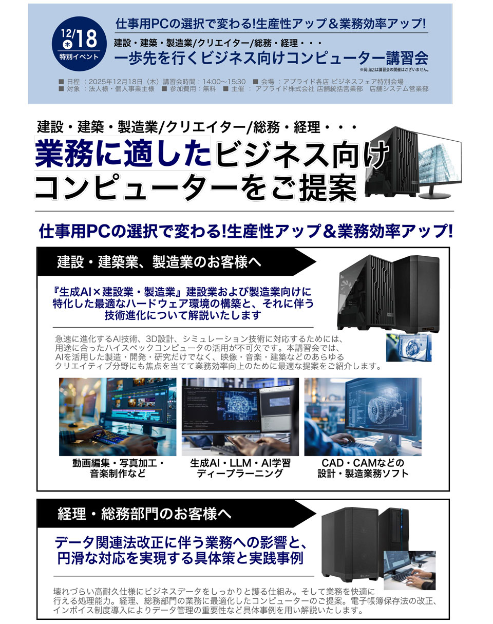 法人様・個人事業主様業務に適したビジネス向けコンピューターのご提案!