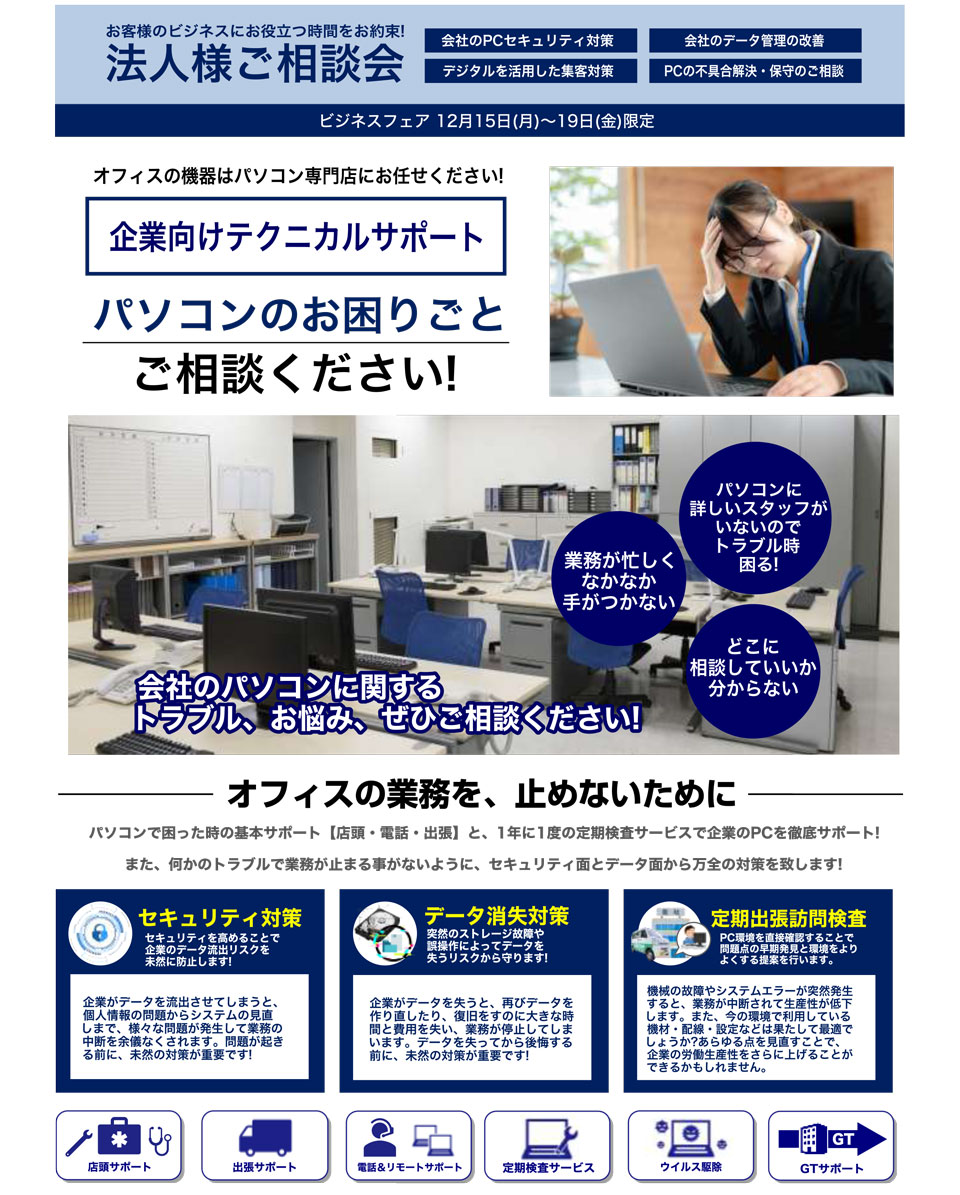 企業様向けテクニカルサポート パソコンのお困りごと相談会