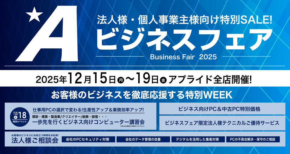 法人様・個人事業主様、アプライドビジネスフェアにてご相談承ります!