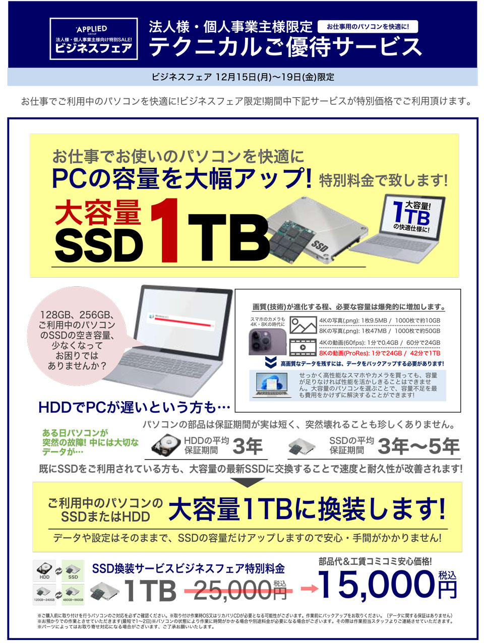 ビジネスフェア限定のテクニカルご優待サービスや特価のビジネスPC&中古PCも多数ご用意!