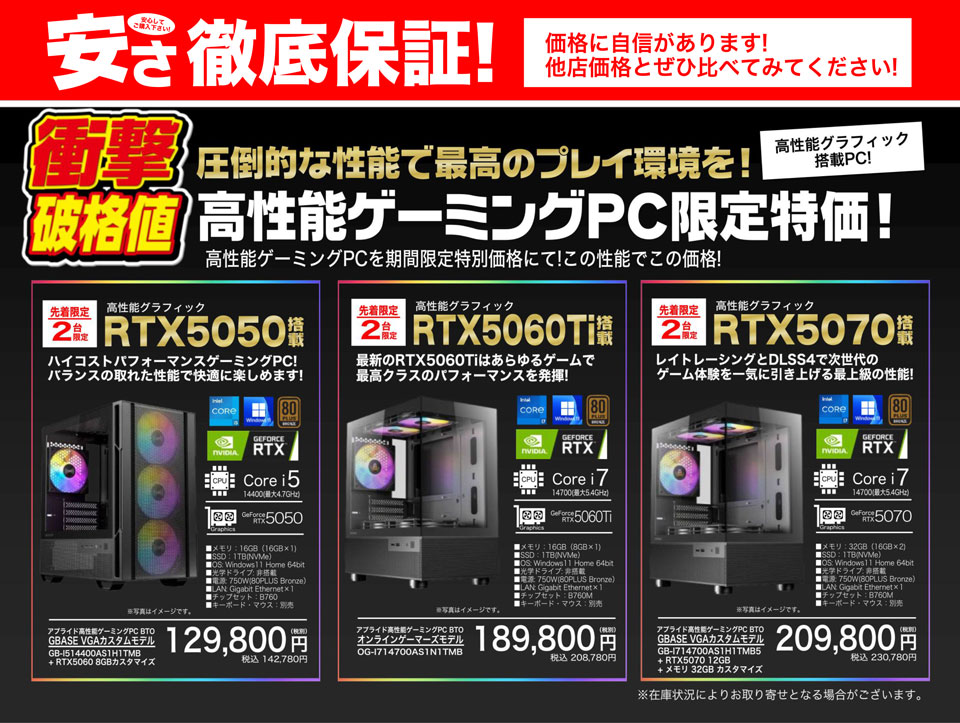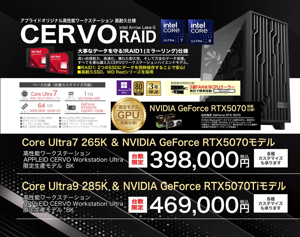 今回は高耐久仕様のRAIDモデルもグラボ搭載でご準備しました!