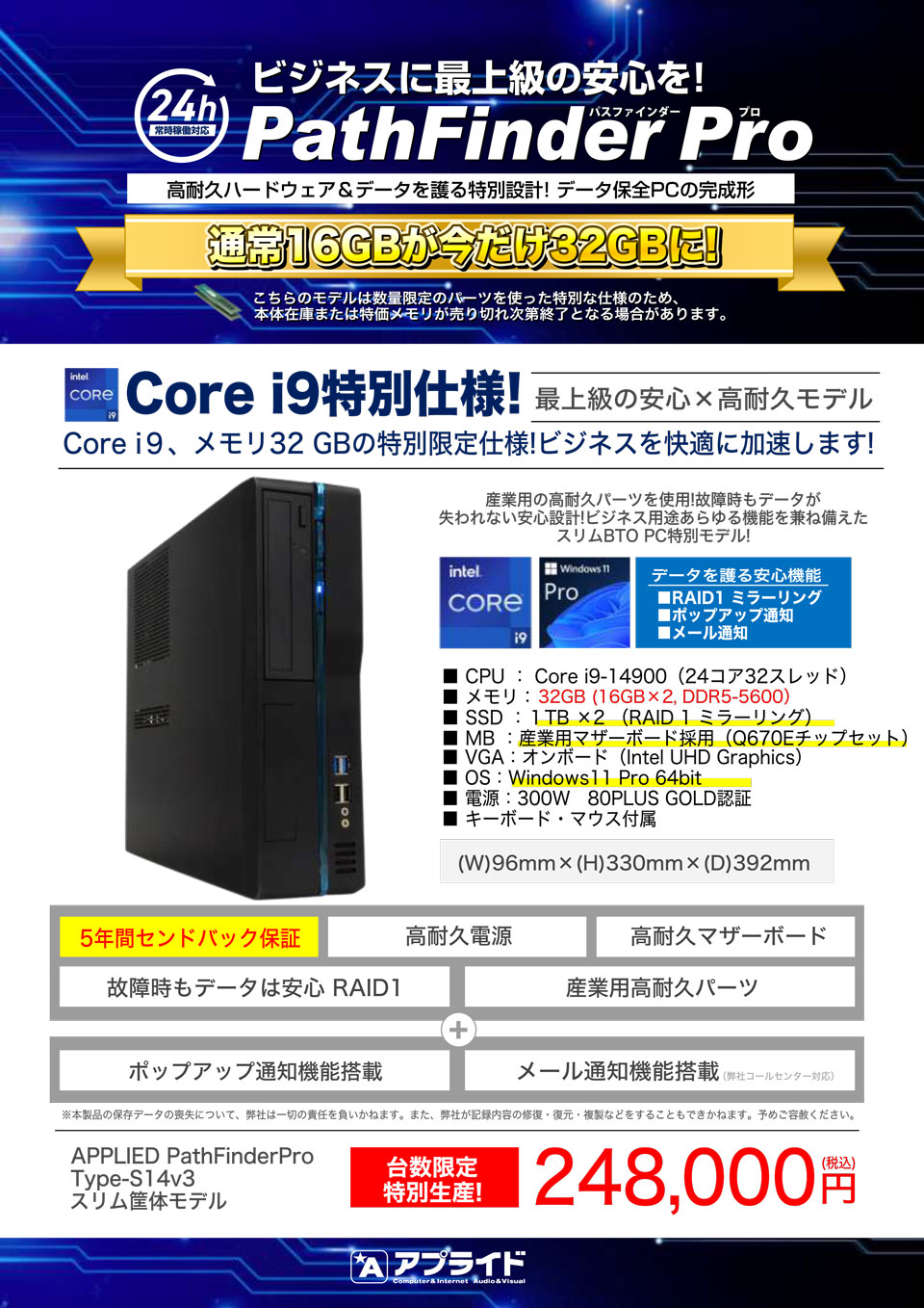 大人気!高付加高性能アプライドオリジナルデスクトップパソコン