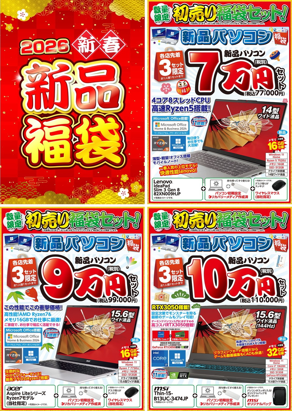 【新春初売り!】早いもの勝ち!初売り限定パソコン福袋セット!