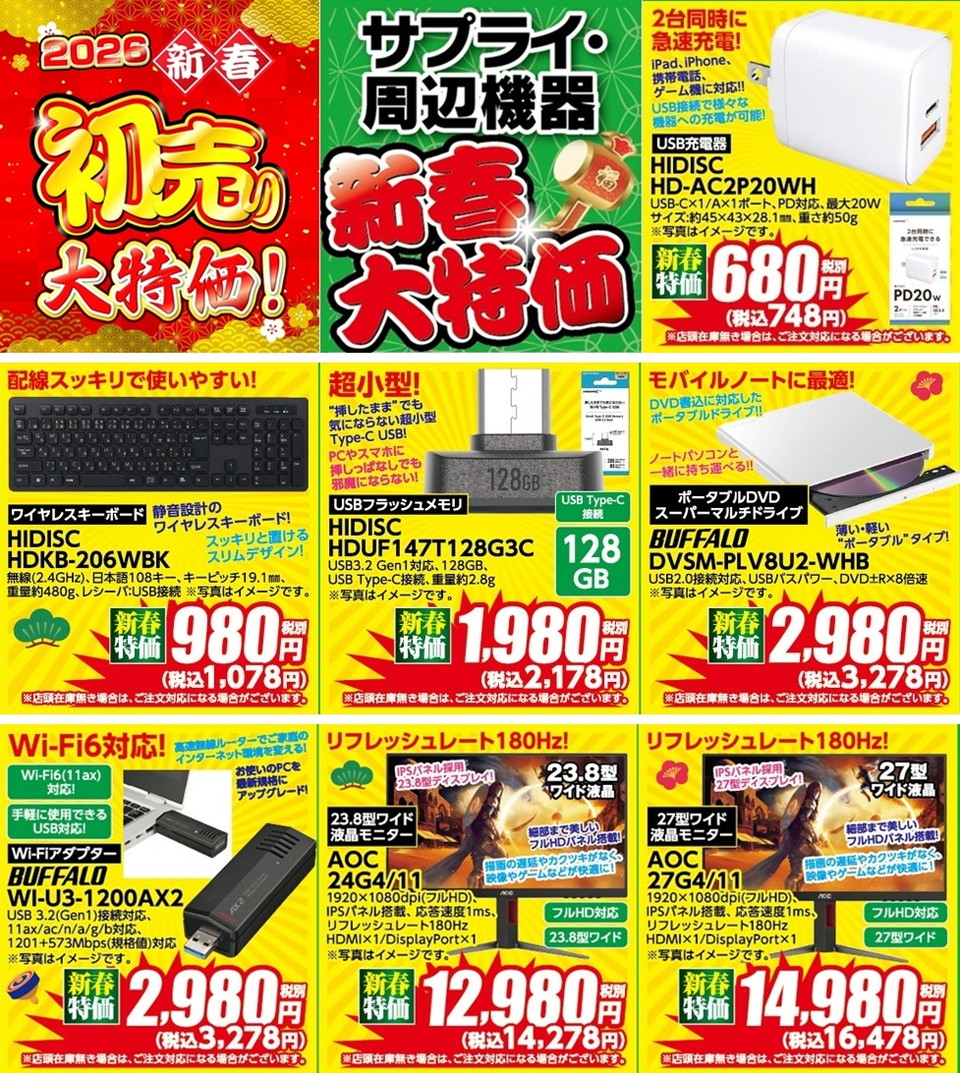 定番のサプライ・周辺機器も初売り特価!
