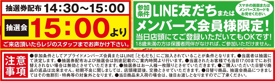 抽選会の参加条件は以下をご確認ください。