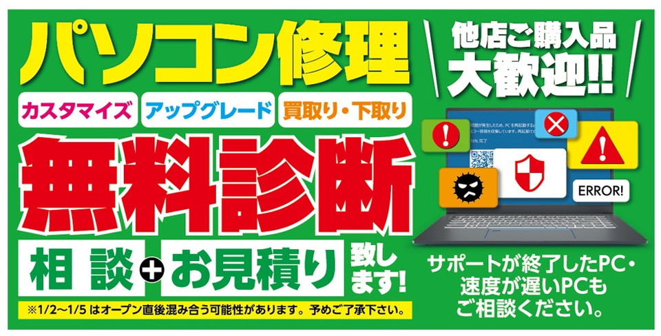 パソコンお持ち込み修理相談窓口もご利用ください!