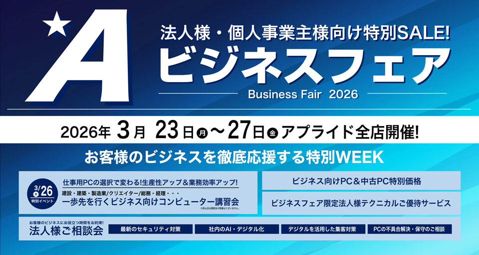 ビジネスフェア期間中は、ビジネス向けPC、中古PC等、様々な特価PCをご用意いたします!