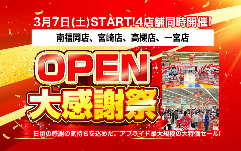 | アプライド大分店 | 10:00~19:00 | 〒870-0025 大分市顕徳町3-3-6 | 097-533-9700 | |