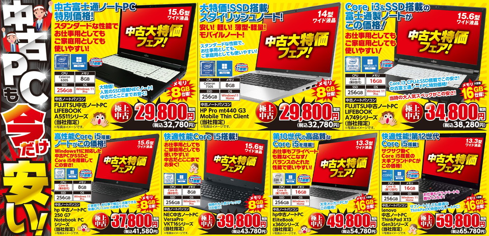 中古ノートパソコンOPEN大感謝祭特価!