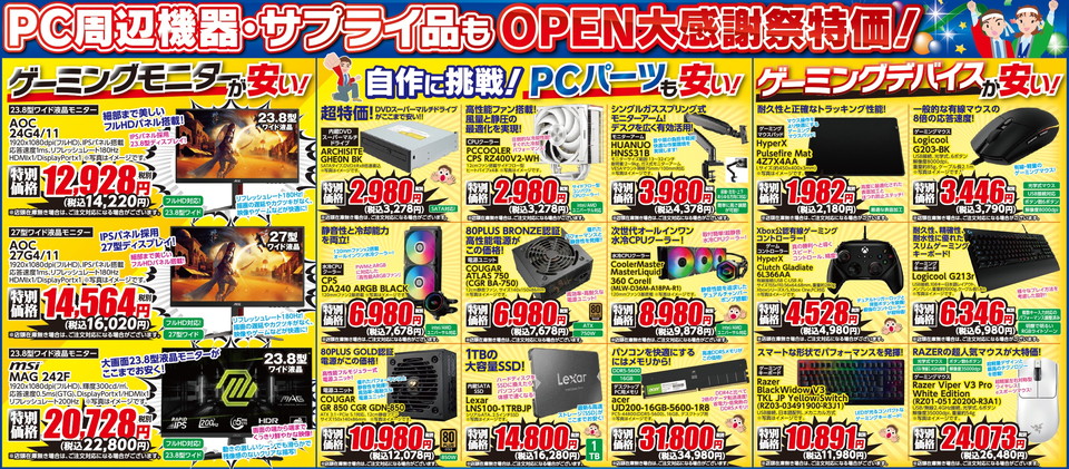 周辺機器・PCパーツ・ゲーミングデバイスOPEN大感謝祭特価!