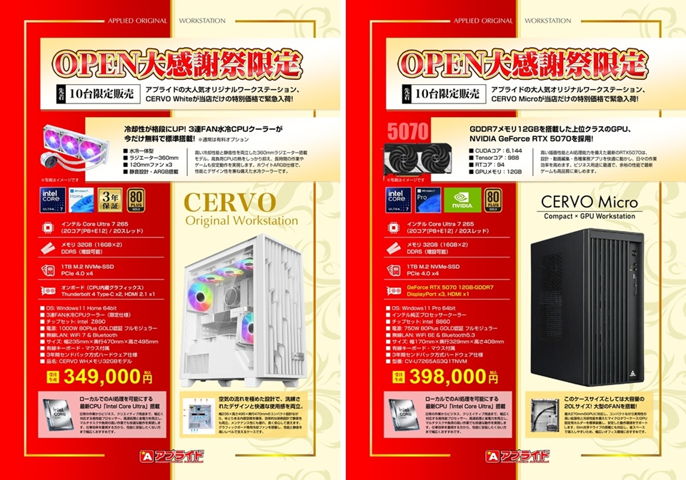 オリジナルワークステーション、「CERVO」のOPEN大感謝祭特別限定モデルも登場!