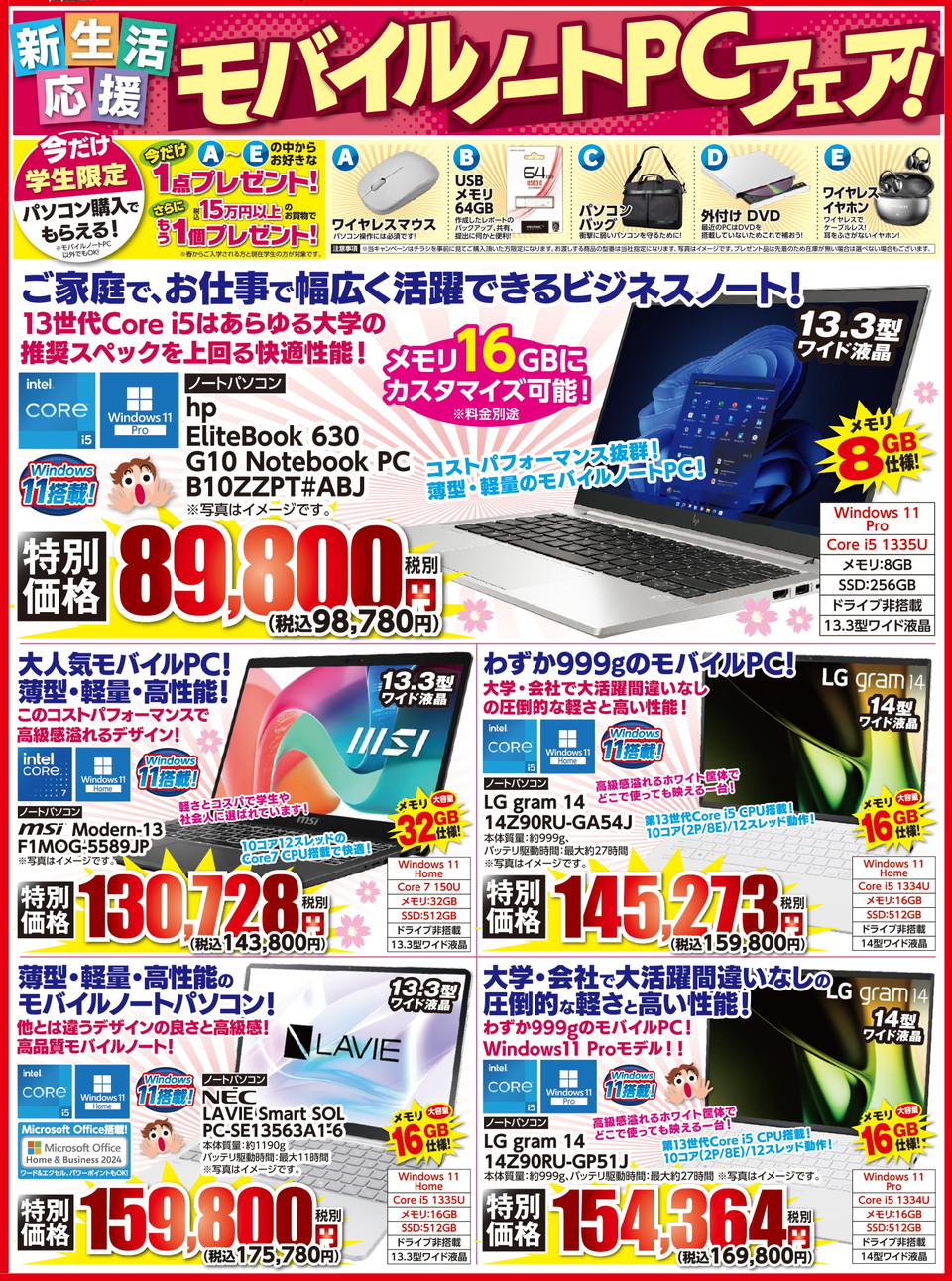 新生活応援フェアも開催! 学生に大人気の薄型・軽量ノートPCが安い!
