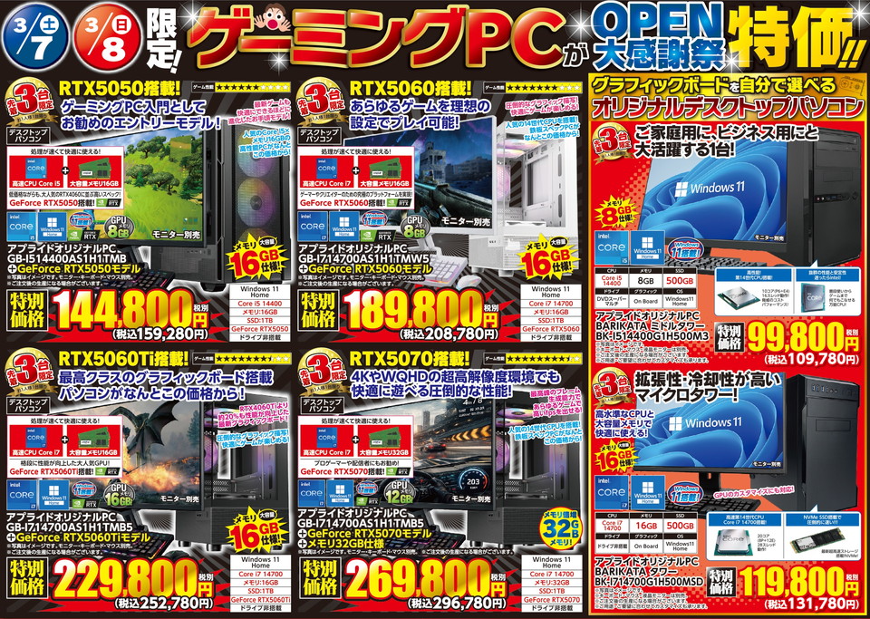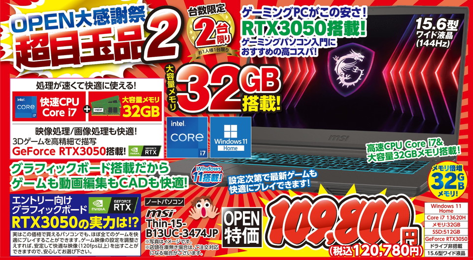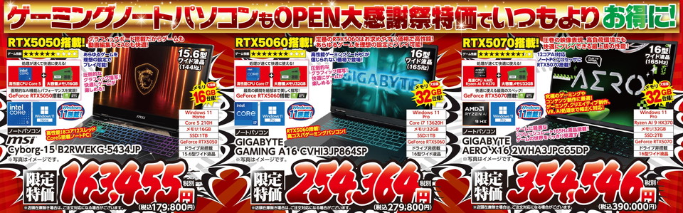 ゲーミングパソコンOPEN大感謝祭特価!
