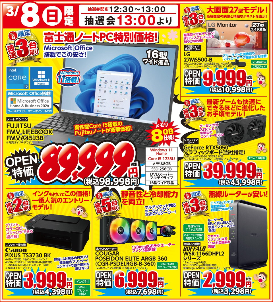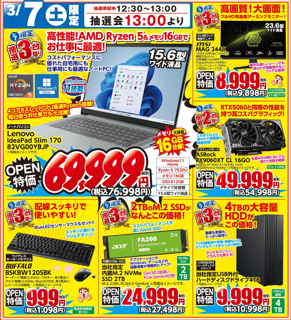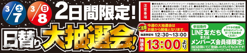 3/7(土)・3/8(日)限定、日替わり大抽選会