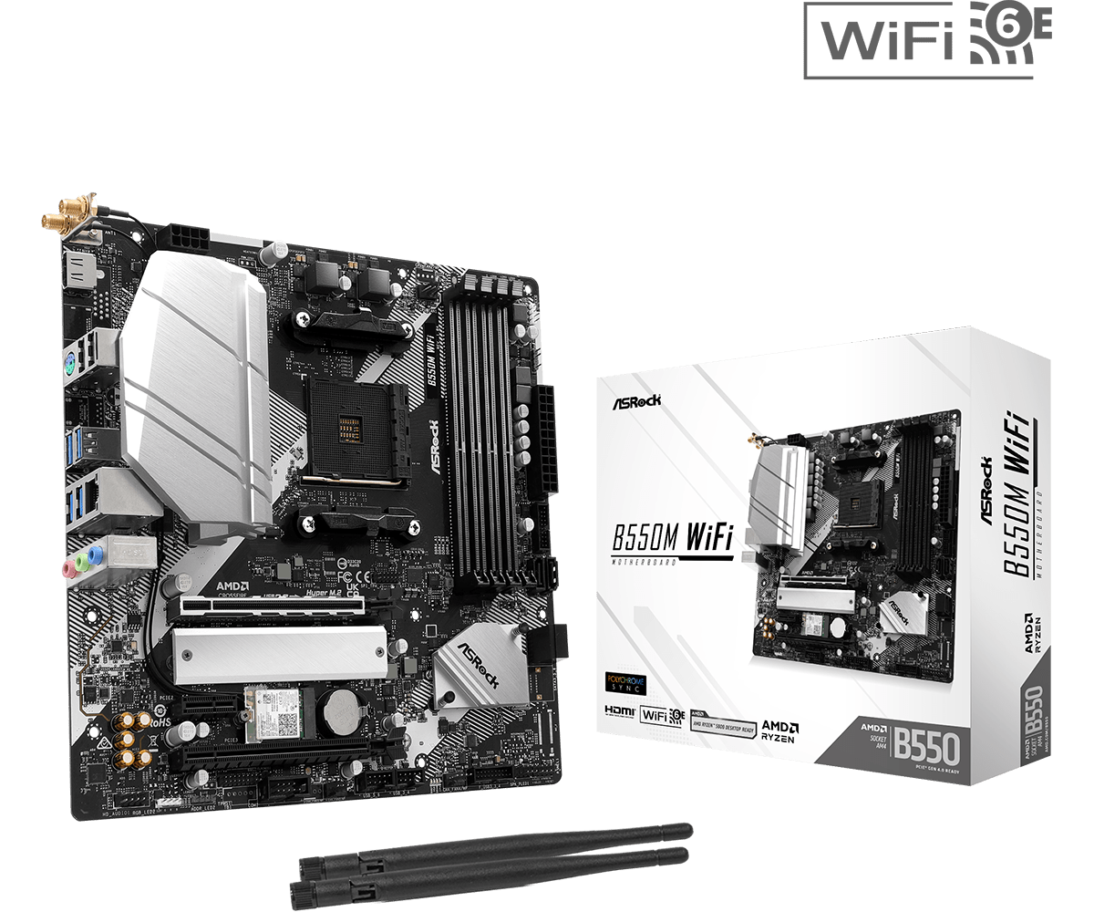 B550M WiFi¡¡¤Ï802.11axe Wi-Fi 6E ¥â¥¸¥å¡¼¥ëÅëºÜ¤ÎAMD B550¥Á¥Ã¥×¥»¥Ã¥È¥Þ¥¶¡¼¥Ü¡¼¥É¡£
